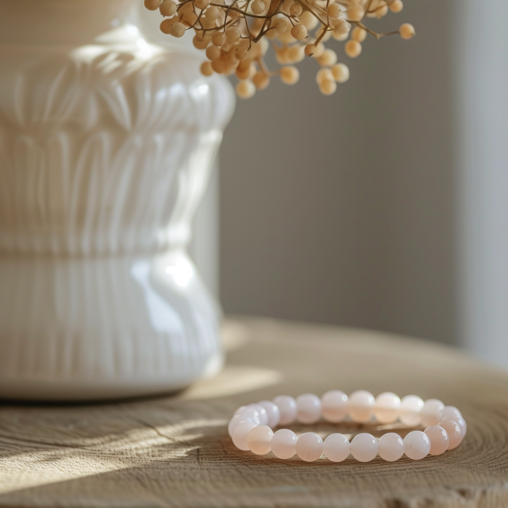 Jeg er vild med mit nye Rosa Quartz armbånd, smukke farverige perler.